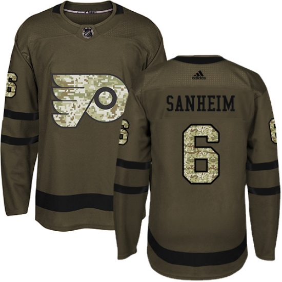 Home>NHL>Philadelphia Flyers>Travis Sanheim>Men's Adidas Philadelphia Flyers #6 Travis Sanheim Authentic Green Salute to Service NHL Jersey