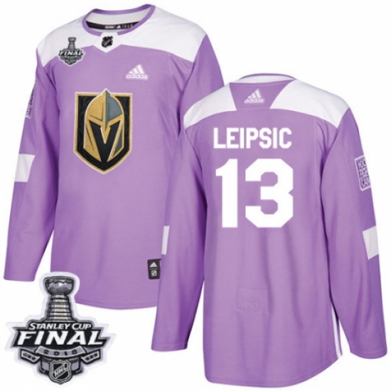 Men's Adidas Vegas Golden Knights #13 Brendan Leipsic Authentic Purple Fights Cancer Practice 2018 Stanley Cup Final NHL Jersey