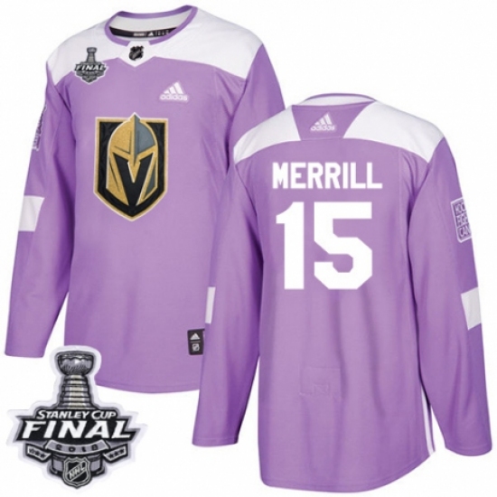 Men's Adidas Vegas Golden Knights #15 Jon Merrill Authentic Purple Fights Cancer Practice 2018 Stanley Cup Final NHL Jersey