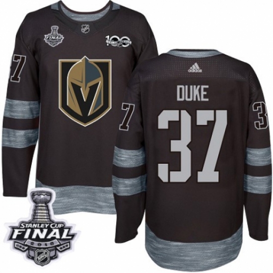 >Men's Adidas Vegas Golden Knights #37 Reid Duke Authentic Black 1917-2017 100th Anniversary 2018 Stanley Cup Final NHL Jersey