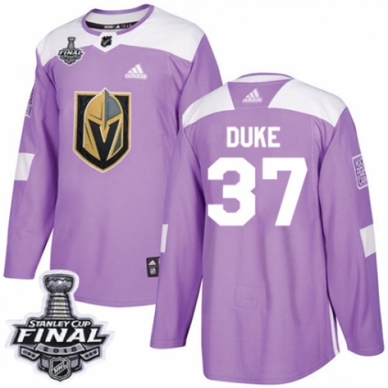 >Men's Adidas Vegas Golden Knights #37 Reid Duke Authentic Purple Fights Cancer Practice 2018 Stanley Cup Final NHL Jersey