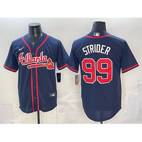 Men's Atlanta Braves #99 Spencer Strider Navy Cool Base Stitched Baseball Jersey