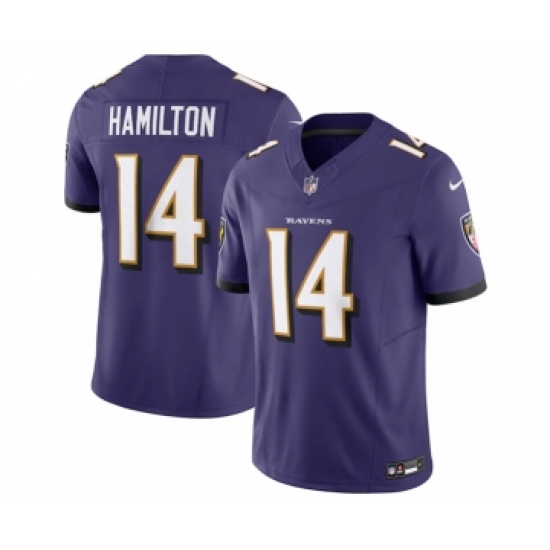 Men's Baltimore Ravens #14 Kyle Hamilton Purple 2023 F.U.S.E Vapor Jersey