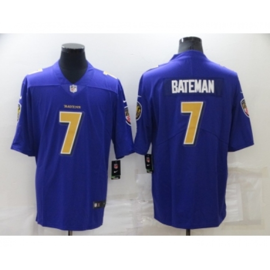 Men's Baltimore Ravens #7 Rashod Bateman Purple 2020 Color Rush Stitched NFL Nike Limited Jersey