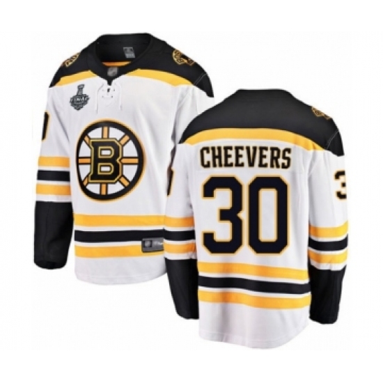 Men's Boston Bruins #30 Gerry Cheevers Authentic White Away Fanatics Branded Breakaway 2019 Stanley Cup Final Bound Hockey Jersey
