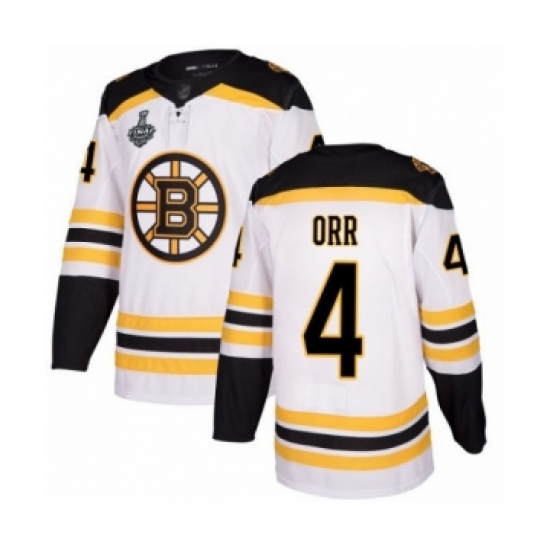 Men's Boston Bruins #4 Bobby Orr Authentic White Away 2019 Stanley Cup Final Bound Hockey Jersey