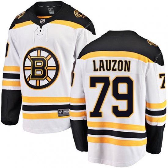 Home>NHL>Boston Bruins>Jeremy Lauzon>Men's Boston Bruins #79 Jeremy Lauzon Authentic White Away Fanatics Branded Breakaway NHL Jersey