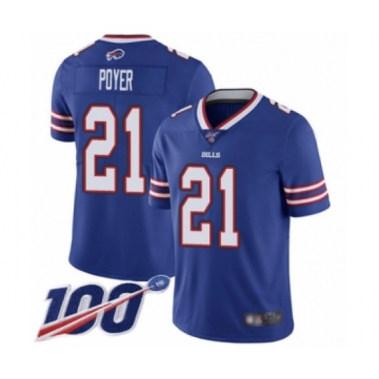 >Men's Buffalo Bills #21 Jordan Poyer Royal Blue Team Color Vapor Untouchable Limited Player 100th Season Football Jersey
