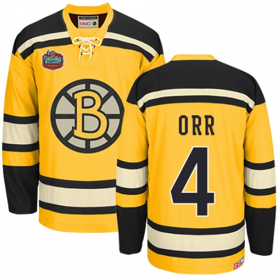 Men's CCM Boston Bruins #4 Bobby Orr Authentic Gold Winter Classic Throwback NHL Jersey