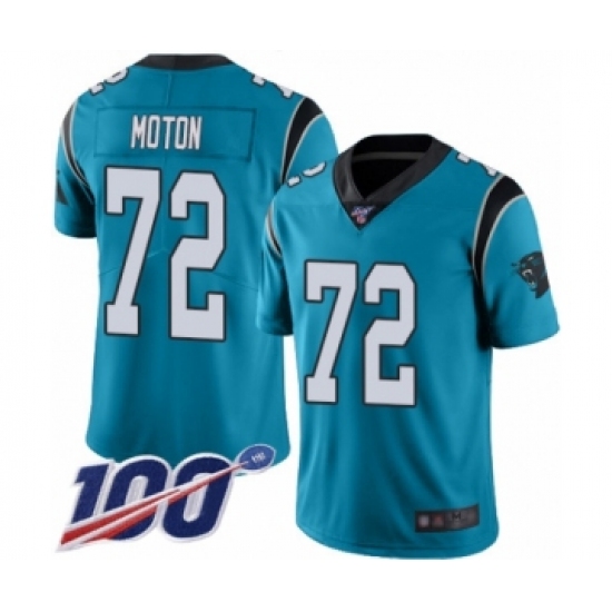 >Men's Carolina Panthers #72 Taylor Moton Blue Alternate Vapor Untouchable Limited Player 100th Season Football Jersey