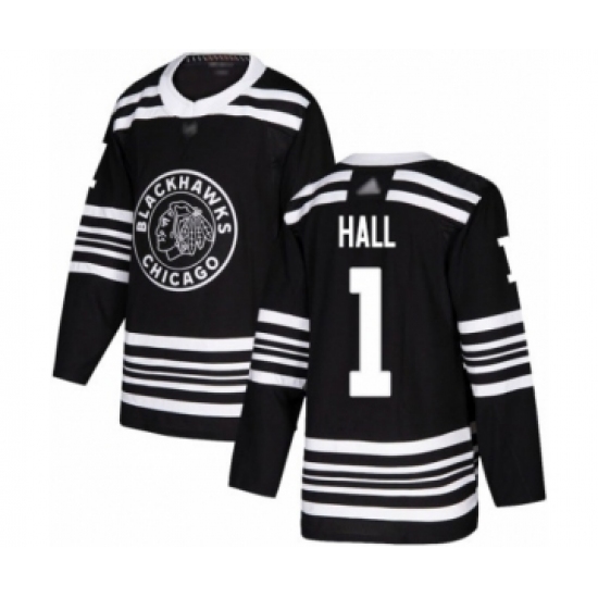 Youth Adidas Chicago Blackhawks #1 Glenn Hall Authentic Black 2019 Winter Classic NHL Jersey