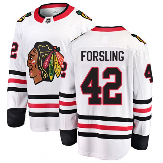 Home>NHL>Chicago Blackhawks>Gustav Forsling>Men's Chicago Blackhawks #42 Gustav Forsling Fanatics Branded White Away Breakaway NHL Jersey