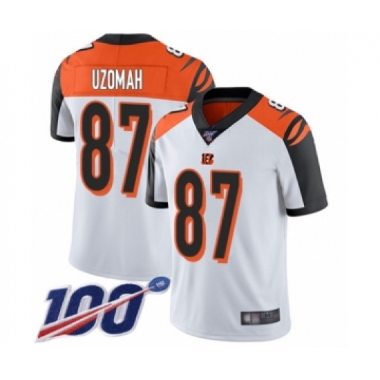 >Men's Cincinnati Bengals #87 C.J. Uzomah White Vapor Untouchable Limited Player 100th Season Football Jersey