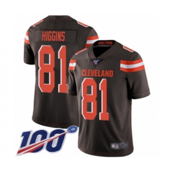 >Men's Cleveland Browns #81 Rashard Higgins Brown Team Color Vapor Untouchable Limited Player 100th Season Football Jersey