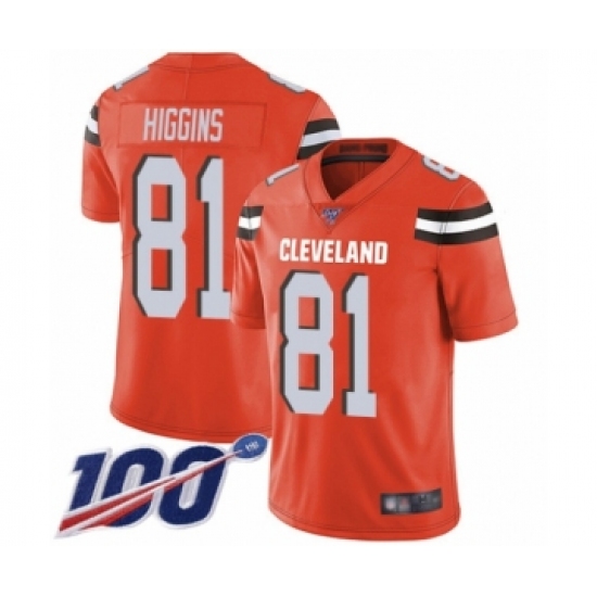 Men's Cleveland Browns #81 Rashard Higgins Orange Alternate Vapor Untouchable Limited Player 100th Season Football Jersey