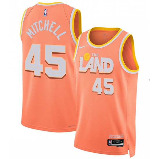>Men's Cleveland Cavaliers #45 Donovan Mitchell Orange 2025-26 City Edition Swingman Stitched Jersey