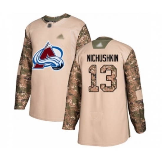 >Men's Colorado Avalanche #13 Valeri Nichushkin Authentic Camo Veterans Day Practice Hockey Jersey