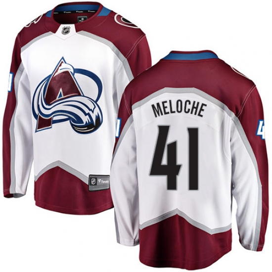Home>NHL>Colorado Avalanche>Nicolas Meloche>Men's Colorado Avalanche #41 Nicolas Meloche Fanatics Branded White Away Breakaway NHL Jersey