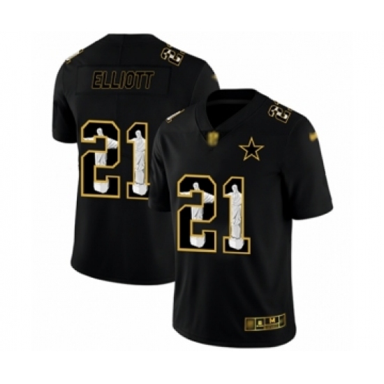 Men's Dallas Cowboys #21 Ezekiel Elliott Black Golden Edition Limited Football Jersey