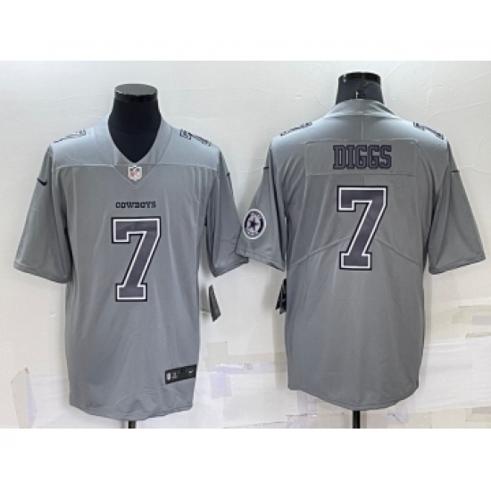 >Men's Dallas Cowboys #7 Trevon Diggs LOGO Grey Atmosphere Fashion 2022 Vapor Untouchable Stitched Nike Limited Jersey