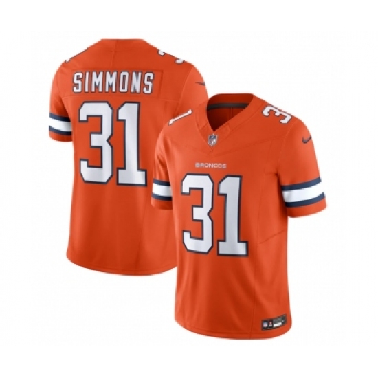 >Men's Denver Broncos #31 Justin Simmons Orange 2023 F.U.S.E. Vapor Untouchable Stitched Jersey