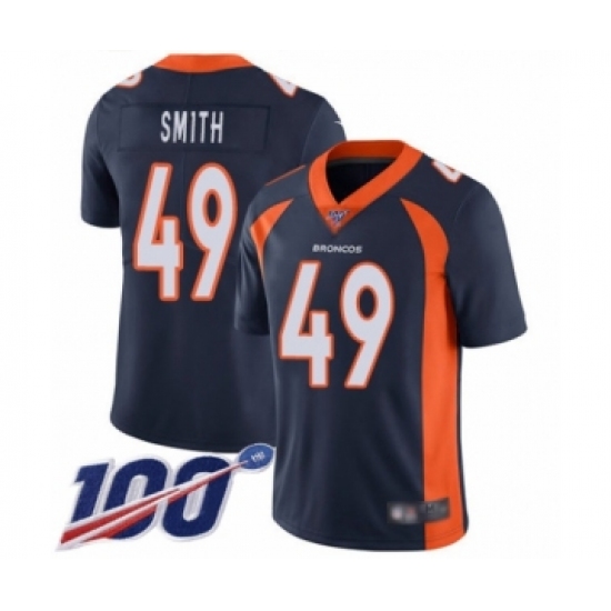 >Men's Denver Broncos #49 Dennis Smith Navy Blue Alternate Vapor Untouchable Limited Player 100th Season Football Jersey