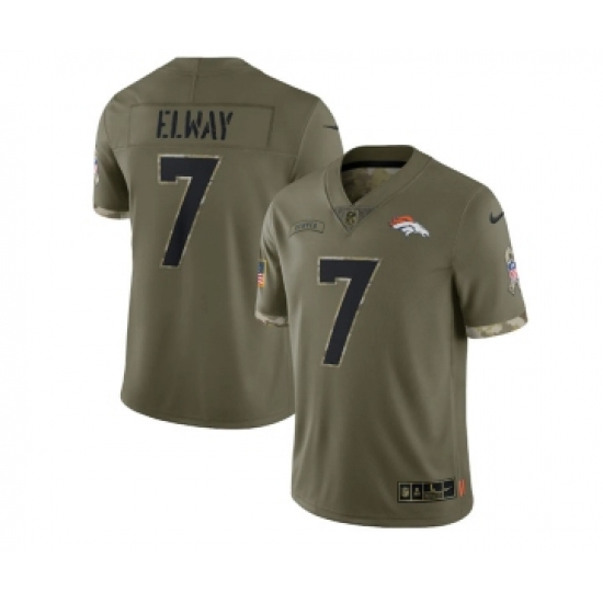 Men's Denver Broncos #7 John Elway 2022 Olive Salute To Service Limited Stitched Jersey