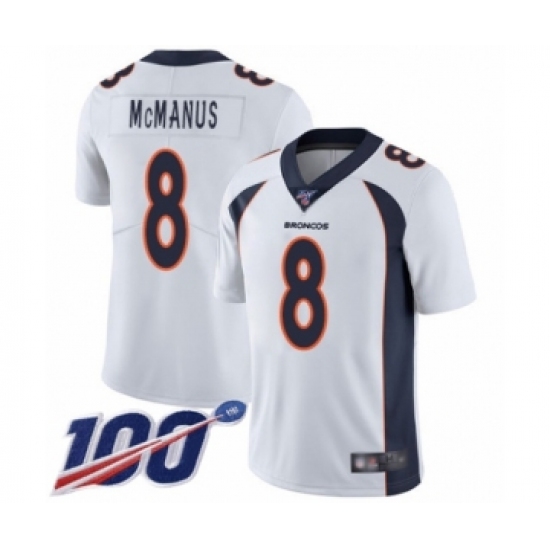 Men's Denver Broncos #8 Brandon McManus White Vapor Untouchable Limited Player 100th Season Football Jersey