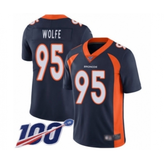 Men's Denver Broncos #95 Derek Wolfe Navy Blue Alternate Vapor Untouchable Limited Player 100th Season Football Jersey