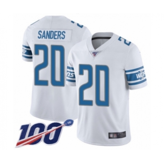 >Men's Detroit Lions #20 Barry Sanders White Vapor Untouchable Limited Player 100th Season Football Jersey