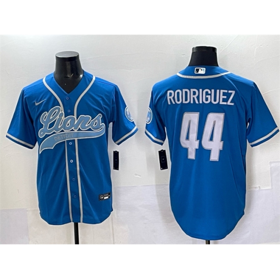 >Men's Detroit Lions #44 Malcolm Rodriguez Blue Cool Base Stitched Baseball Jersey