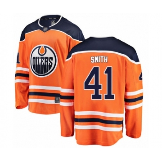 >Men's Edmonton Oilers #41 Mike Smith Authentic Orange Home Fanatics Branded Breakaway Hockey Jersey