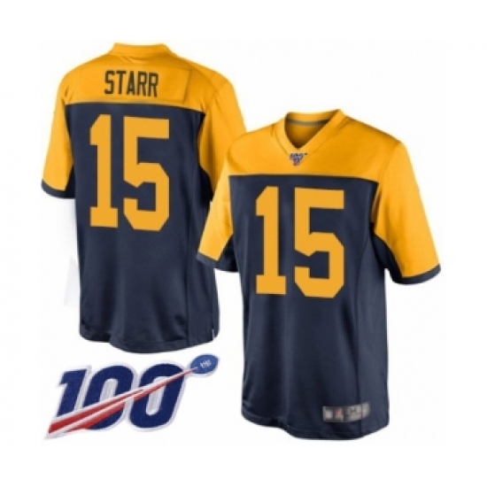 Men's Green Bay Packers #15 Bart Starr Limited Navy Blue Alternate 100th Season Football Jersey