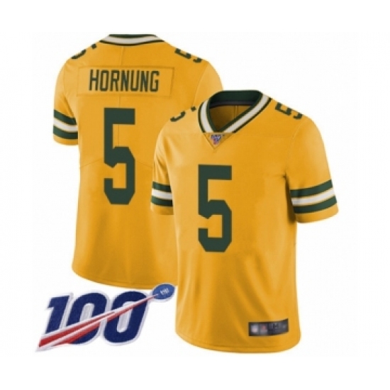 >Men's Green Bay Packers #5 Paul Hornung Limited Gold Rush Vapor Untouchable 100th Season Football Jersey