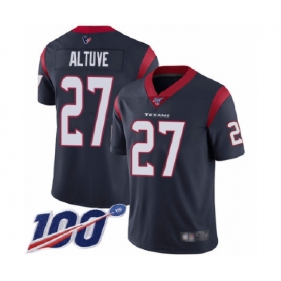 >Men's Houston Texans #27 Jose Altuve Navy Blue Team Color Vapor Untouchable Limited Player 100th Season Football Jersey