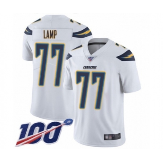 Men's Los Angeles Chargers #77 Forrest Lamp White Vapor Untouchable Limited Player 100th Season Football Jersey