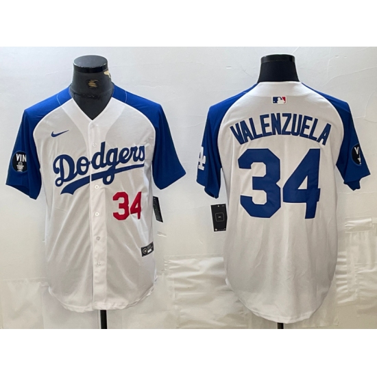 Mens Los Angeles Dodgers #34 Toro Valenzuela Number White Blue Fashion Stitched Cool Base Limited Jersey
