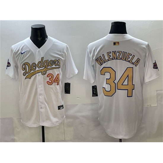 Men's Los Angeles Dodgers #34 Toro Valenzuela White Stitched Baseball Jersey