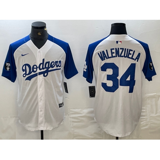 Men's Los Angeles Dodgers #34 Toro Valenzuela White Blue Fashion Stitched Cool Base Limited Jersey