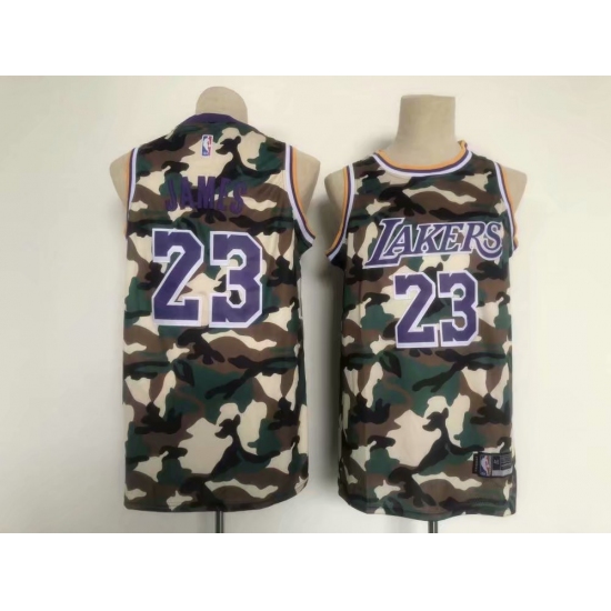 >Men's Los Angeles Lakers #23 LeBron James Swingman Camo Collection Jersey