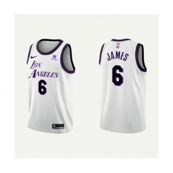 Youth Los Angeles Lakers #6 LeBron James Swingman White Basketball Jersey - Association Edition