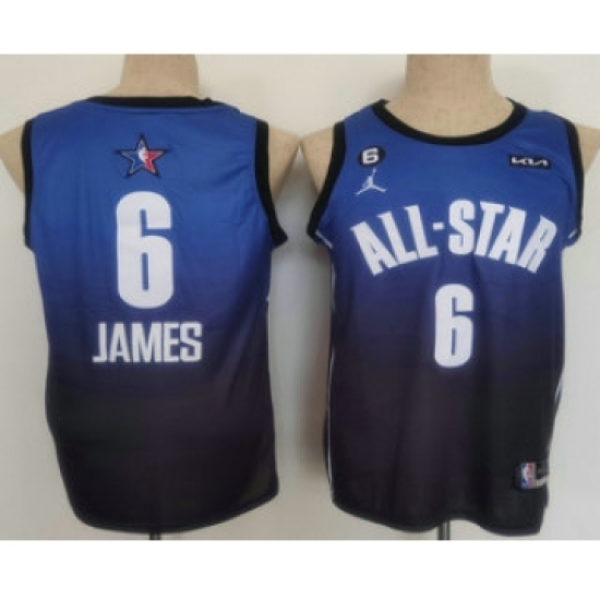 >Men's Los Angeles Lakers #6 LeBron James Navy Blue 2022 All Star 6 Patchs Icon Sponsor Swingman Jersey