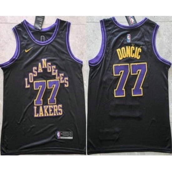 >Men's Los Angeles Lakers #77 Luka Doncic Black 2025 City Swingman Jersey