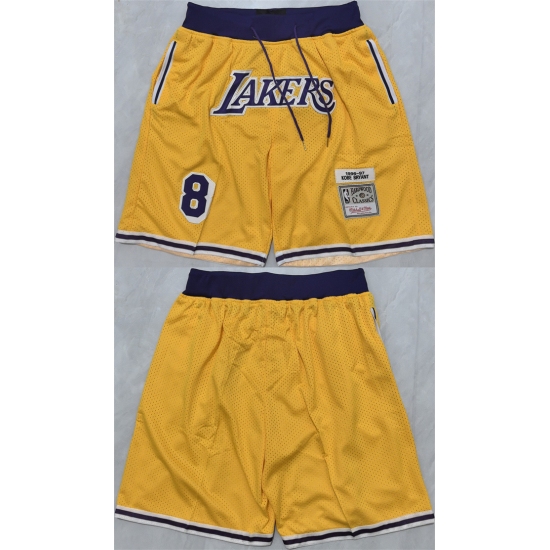 >Men's Los Angeles Lakers #8 Kobe Bryant Yellow 2025 Shorts (Run Small)