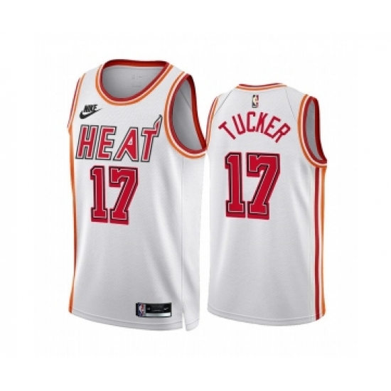 Men's Miami Heat #17 P.J. Tucker White Classic Edition Stitched Basketball Jersey