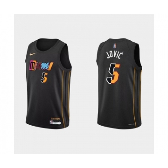 Men's Miami Heat #5 Nikola Jovic 2022 Black City Edition 75th Anniversary Stitched Basketball Jersey