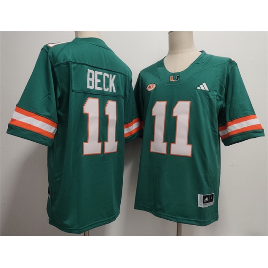 >Men's Miami Hurricanes #11 Carson Beck Aqua Stitched Football Jersey