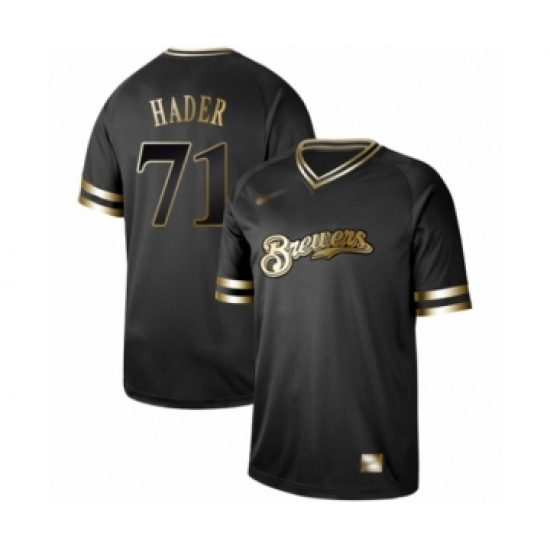 >Men's Milwaukee Brewers #71 Josh Hader Authentic Black Gold Fashion Baseball Jersey