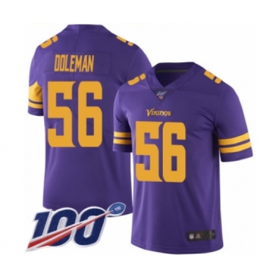 >Men's Minnesota Vikings #56 Chris Doleman Limited Purple Rush Vapor Untouchable 100th Season Football Jersey