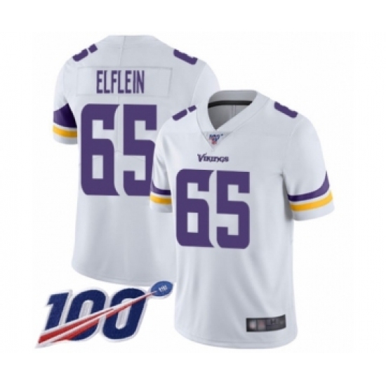 >Men's Minnesota Vikings #65 Pat Elflein White Vapor Untouchable Limited Player 100th Season Football Jersey
